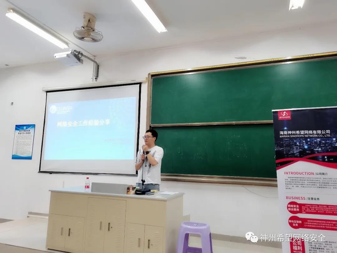 2021年7月5日下午14:30,海南神州希望网络有限公司赴必赢76net线路,面向公司员工开展“OWASP进校园暨海南神州希望网络有限公司网络安全校园行专题讲座”。曾令伟副经理、黄宏健主任、通信工程专业负责人唐亮也一同参与。